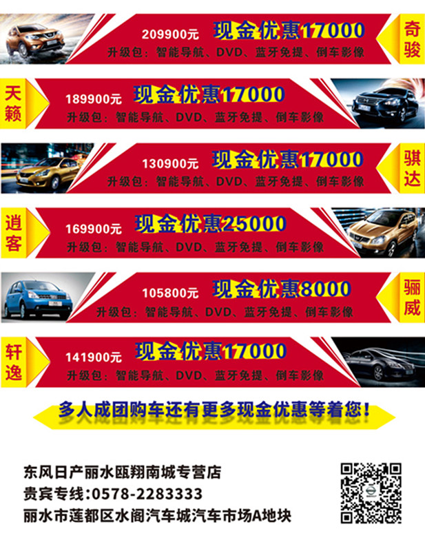 活動時間、地點:2015年5月23號13:30(周六) 東風(fēng)日產(chǎn)麗水甌翔店展廳