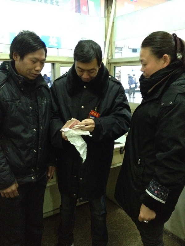 經(jīng)了解,這個(gè)男子名叫鄧干武,貴州人,文盲,這16400元錢是他打工過一年的攢下的辛苦錢,也是一家老小過年錢。因?yàn)椴蛔R(shí)字,所以也沒存銀行,而是用餐巾紙包好藏在一個(gè)很不起眼的背包夾層里。失而復(fù)得的錢,讓鄧干武欣喜無比,而東站員工的行為,更溫暖了人心,溫暖著社會(huì)。