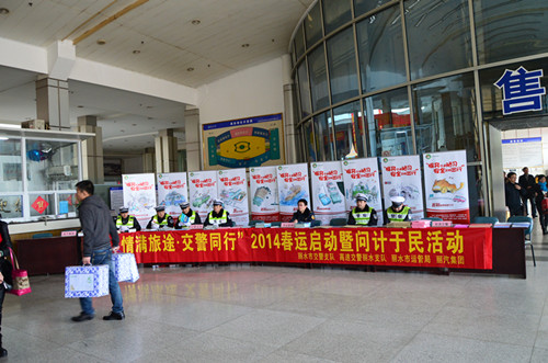 16日上午,集團(tuán)公司與市交警支隊(duì)、高速交警支隊(duì)、市運(yùn)管局等單位在客運(yùn)西站舉行春運(yùn)啟動暨問計(jì)于民活動。(宣教部 蘭寧)