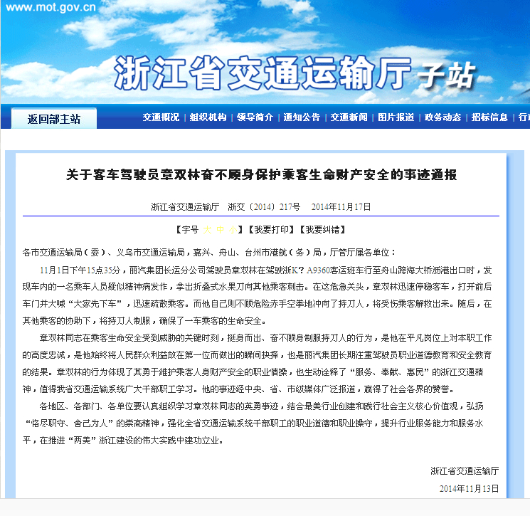 省交通運(yùn)輸廳發(fā)出章雙林事跡通報 號召全省交通運(yùn)輸系統(tǒng)干部職工學(xué)習(xí)