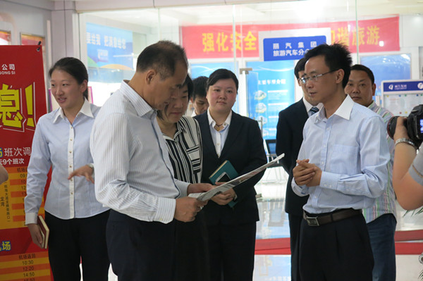 5月8日上午,省旅游局副局長葉建國在市旅游局副局長何麗萍陪同下,來旅游集散中心考察指導(dǎo)旅游安全工作。麗汽集團(tuán)董事長葉茂、麗汽集團(tuán)經(jīng)理助理、旅游集散中心總經(jīng)理葉劍飛等人陪同。