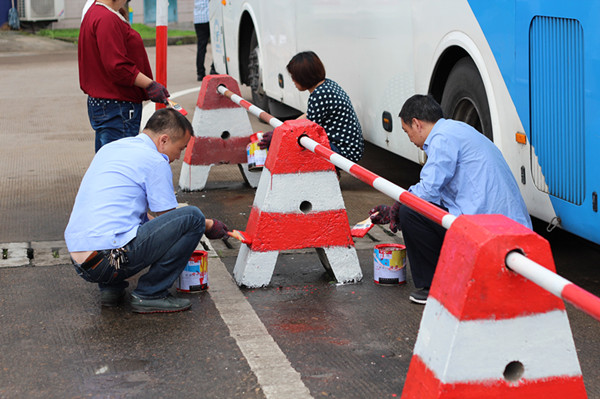 為響應總公司“開源節(jié)流,挖潛增效”的號召,也為配合客運東站的“安全生產(chǎn)月”活動,發(fā)揚“自己動手,豐衣足食”的勞動精神,在東站黨支部委員金旭陽的倡導下,東站的黨員、團員、入黨積極分子及普通員工在6月5日上午早早地來到東站,進行第二波自己動手挖潛增效活動,利用自己的休息時間對東站年久褪色的隔離墩進行油漆刷新。