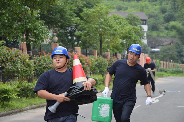 為使演練更加貼近實戰(zhàn),本次演練的時間、地點都屬保密內(nèi)容,事前均未告知各個參演單位,只在演練當(dāng)日以短信的形式通知各參演單位聯(lián)系人。下午14:30,事故演練現(xiàn)場總指揮、麗汽集團常務(wù)副總經(jīng)理何赤詮下達開始演練的指令,演練工作小組立即通過短信群發(fā)告知各參演單位第一時間趕赴事故現(xiàn)場。各單位聯(lián)系人收到事故短信后,按生產(chǎn)事故報告程序及時、全面的向相關(guān)部門報告(將事故情況以短信發(fā)送至指定手機號碼的形式模擬報告程序),然后攜帶必要的應(yīng)急救援物資和個人防護用品趕赴現(xiàn)場,參加救援。8分鐘后,客運西站代表隊第一個趕到事故現(xiàn)場。18分鐘后,11個參演代表隊全部到達事故現(xiàn)場。
