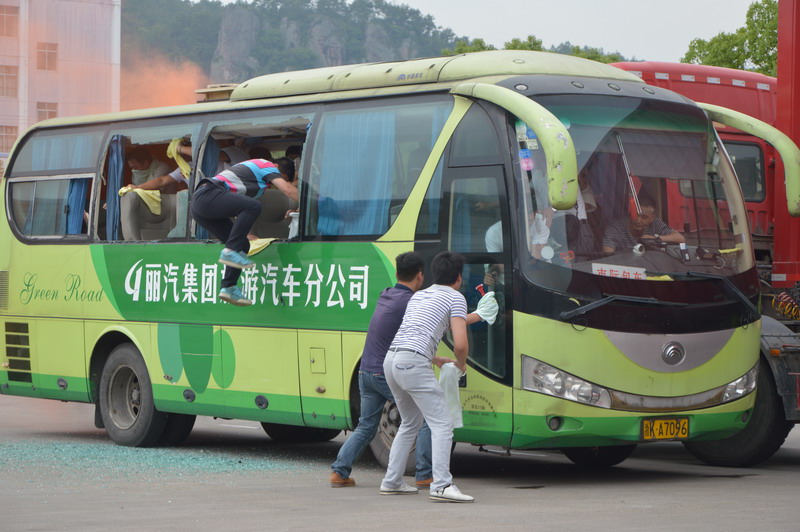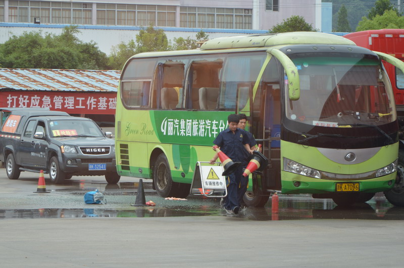 為了全面落實(shí)安全生產(chǎn)責(zé)任,檢驗(yàn)評估麗水市突發(fā)事件應(yīng)急救援預(yù)案和應(yīng)急救援體系的適應(yīng)性、有效性,最大限度地減少各類突發(fā)事件的損失和負(fù)面影響,6月10日下午,麗水市交通運(yùn)輸局聯(lián)合市道路運(yùn)輸管理局和麗汽集團(tuán)在客運(yùn)西站組織開展了突發(fā)事件應(yīng)急救援演練。此次應(yīng)急救援演練共分2個(gè)科目,分別為:科目一交通事故(客車碰撞后起火燃燒)應(yīng)急處置和科目二“三防”應(yīng)急救援車輛調(diào)集演練。文首即為突發(fā)事件應(yīng)急救援演練中交通事故應(yīng)急處置中的一個(gè)場景,此次演練的另一個(gè)科目模擬市交通運(yùn)輸局緊急調(diào)用麗汽集團(tuán)應(yīng)急搶險(xiǎn)運(yùn)力展開。演練中,麗汽集團(tuán)在接到市交通運(yùn)輸局應(yīng)急搶險(xiǎn)指令后,迅速啟動(dòng)了應(yīng)急預(yù)案,并立即調(diào)派各單位應(yīng)急搶險(xiǎn)車輛在規(guī)定時(shí)間內(nèi)到達(dá)指定區(qū)域待命。