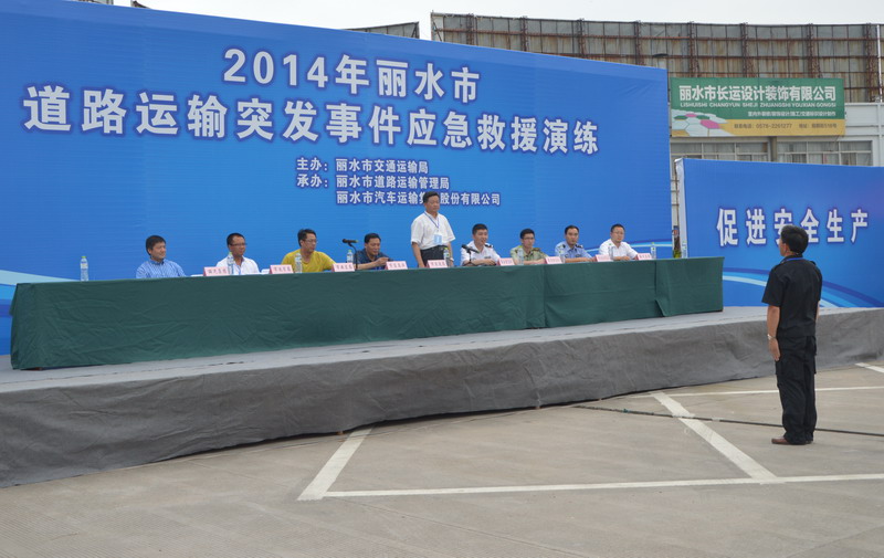整個(gè)演練由市交通局黨組副書記、副局長李根林任總指揮,市交通局副調(diào)研員葉彪、市運(yùn)管局副局長金昌平任副總指揮,麗汽集團(tuán)常務(wù)副總經(jīng)理何赤詮任現(xiàn)場總指揮。演練共調(diào)集各類車輛近20臺(tái),80余人參與了演練。麗水市公安局副局長、麗水市交警支隊(duì)支隊(duì)長陳志斌,麗水市政府應(yīng)急辦主任尹耀新,麗水市消防支隊(duì)副支隊(duì)長鄭志堅(jiān),麗水市安全生產(chǎn)監(jiān)督管理局應(yīng)急處處長王琦,麗水高速交警支隊(duì)副支隊(duì)長朱宏煒,麗汽集團(tuán)黨委書記、董事長葉茂,麗汽集團(tuán)總經(jīng)理薛和有等領(lǐng)導(dǎo)和麗汽集團(tuán)相關(guān)管理人員共200余人觀摩了整個(gè)演練過程。