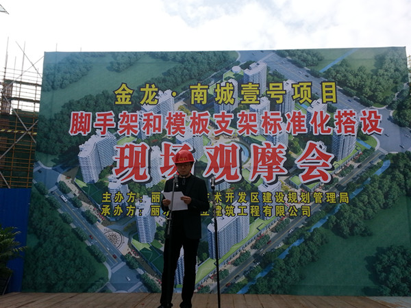 12月3日,由麗水經(jīng)濟(jì)技術(shù)開(kāi)發(fā)區(qū)建設(shè)規(guī)劃管理局主辦的建筑施工現(xiàn)場(chǎng)觀摩會(huì)在金龍?南城壹號(hào)項(xiàng)目工地現(xiàn)場(chǎng)召開(kāi)。市建設(shè)局領(lǐng)導(dǎo)、開(kāi)發(fā)區(qū)建規(guī)局領(lǐng)導(dǎo)、開(kāi)發(fā)區(qū)在建和即將開(kāi)建項(xiàng)目的建設(shè)單位、監(jiān)理單位、施工單位共100余名代表走進(jìn)項(xiàng)目現(xiàn)場(chǎng),全方位觀摩了南城壹號(hào)項(xiàng)目的安全標(biāo)準(zhǔn)化工地、項(xiàng)目精細(xì)化管理、人性化服務(wù)、特別是對(duì)腳手架和模板支架標(biāo)準(zhǔn)化搭設(shè)等內(nèi)容。