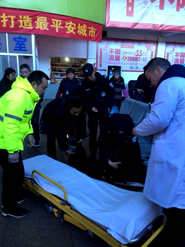 16:20,警察和救護(hù)人員都相繼趕到候車室,醫(yī)生對(duì)生病旅客作了初步診斷,警察也在旅客身上找到了身份證,想方設(shè)法和他家人取得了聯(lián)系。余林峰等人協(xié)助醫(yī)生將旅客抬上了擔(dān)架,并一直護(hù)送到救護(hù)車上。